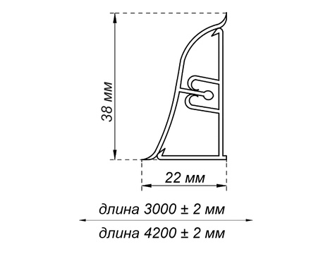 Простота монтажа и ухода, доступная стоимость, высокая влагоустойчивость, эластичность, легкость конструкции и долговечность- основные преимущества кухонного пристеночного плинтуса В3 (38*22).